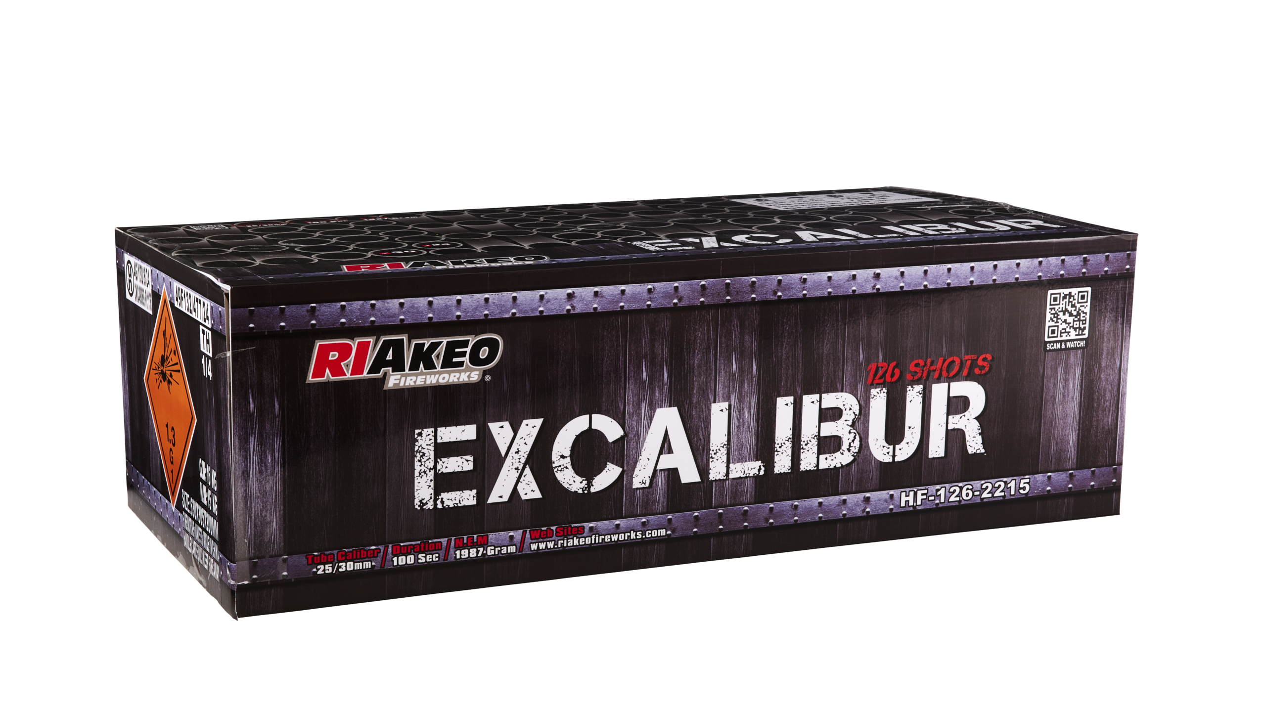 Et imponerende compound-fyrværkeri med hele 126 kraftfulde skud, der leverer et intenst og sammenhængende show. RIAKEO EXCALIBUR byder på store effekter, højt tempo og maksimal wow-faktor